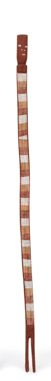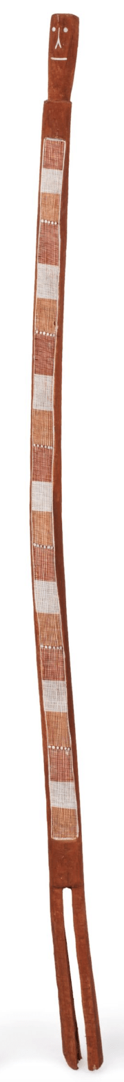 « Magic Figures » H.67cm – c.1965 Provenance:Private Collection, Australia, Sotheby’s, Melbourne, Important Aboriginal Art, Selected Works from the Louis A. Allen Collection, Melbourne, June 1998, Lot 79 LITERATURE Allen, L., Aboriginal Art: Arnhem Land, Field Museum of History, USA, 1971, p. 32 (illus) VENDU