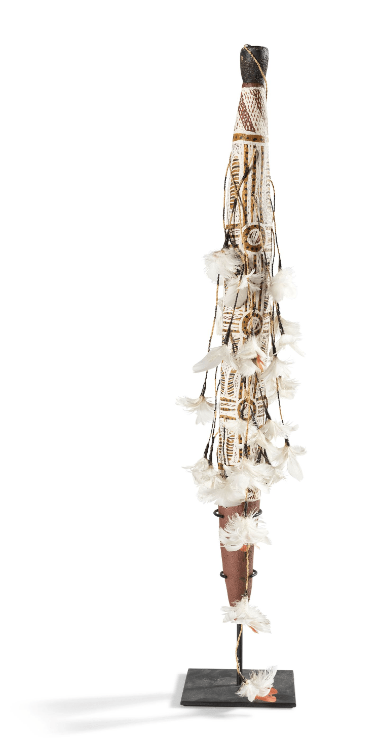 « Tutini and Tunga » h.260 cm – 2007 Provenance: Certificate of authenticity from arts centre Jilamara Art EXHIBITION Noosa Long Weekend Festival 2008, Qld Bruce McLean,‘Everything Returns to Place’ in Seva Frangos et al.,Timothy Cook: Dancing with the Moon, UWA Publishing, Crawley, 2015, p.67 VENDU