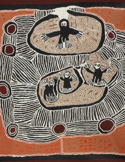 « Spirits at the Gap » 58×71 cm – 1999 Provenance: 1999, Australian Aboriginal Art Co. Pty Ltd., Longview Texas, through their agent, Terence Cain, Indigenous Aspirations, Longview, Texas, acquired from the above in 1999