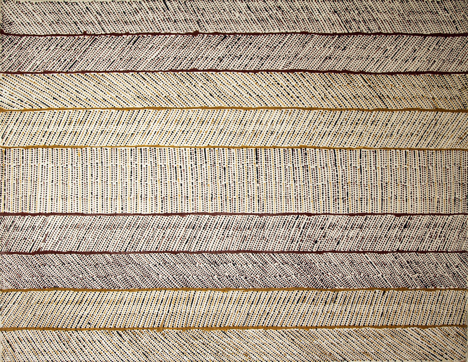 Comme la peinture de sa mère, les motifs de Linus sont directement liés à la peinture corporelle cérémonielle et lorsqu’on lui demande si son travail est influencé par l’observation de sa mère, il répond :